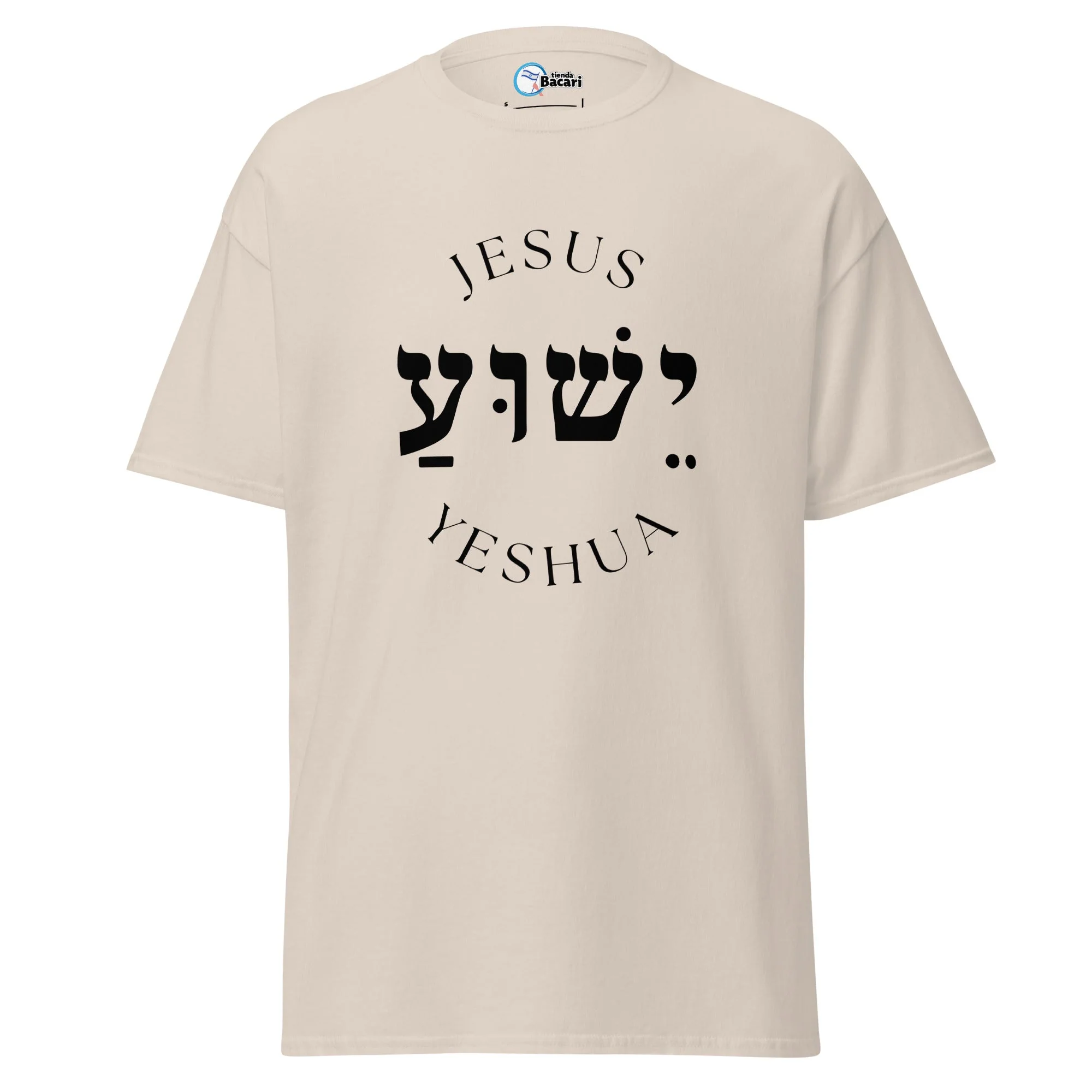 Esta camiseta presenta un diseño poderoso que resalta el nombre de "Yeshua" en español y hebreo, simbolizando la conexión profunda y cultural con las raíces históricas de Jesucristo. Perfecta para aquellos que desean expresar su fe de manera significativa, esta prenda combina diseño minimalista con un mensaje espiritual. Ideal como regalo especial para seres queridos.