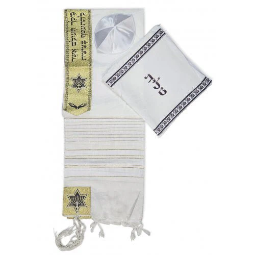 - Incluye una kipá de satén y una bolsa talit
